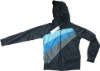 100% Polyester, Tricot Fleece, 220gsm, Warp knitted, Hooded, unisex jacket, zippered closure, long sleeves